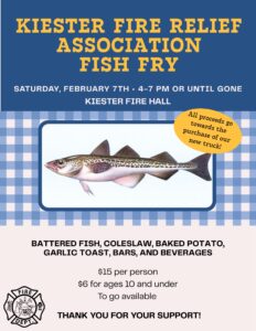 Home » Kiester Firemen’s Relief Fish FryKiester Firemen’s Relief Fish Fryby [email protected]March 10, 2025February 2, 2026February 7, 2026Kiester Firemen's Relief Fish Fry4:00 pm - 7:00 pm General